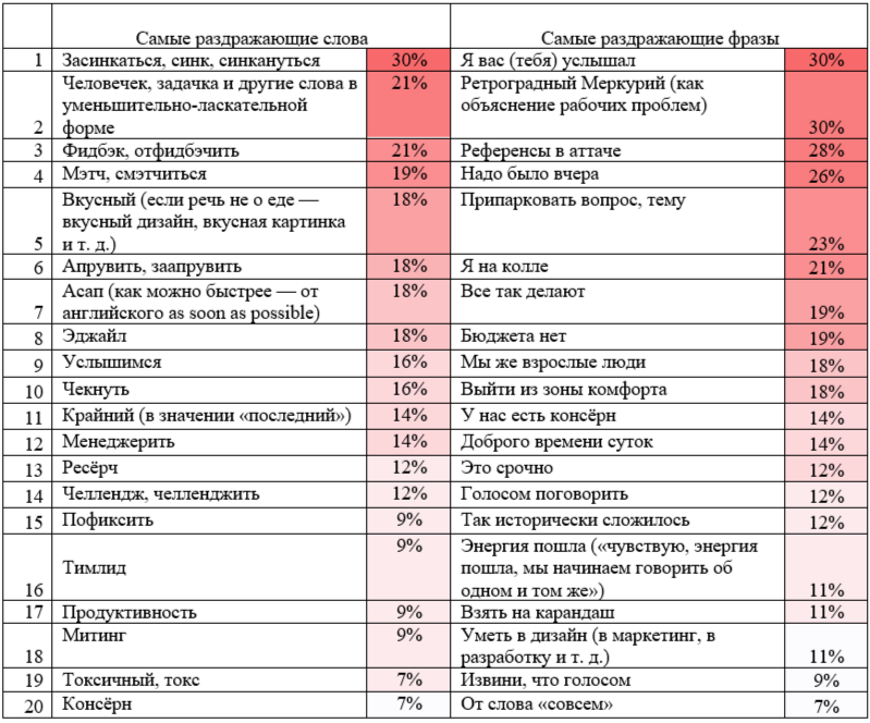 Топ-20 самых раздражающих офисных выражений по версии hh.ru.