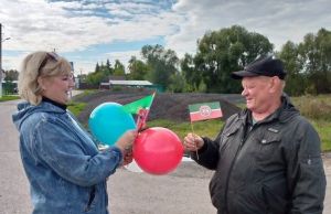 Сотрудники Кураловского сельского Дома культуры провели патриотическую акцию, вручая жителям национальные флаги Татарстана в преддверии празднования Дня Республики.
