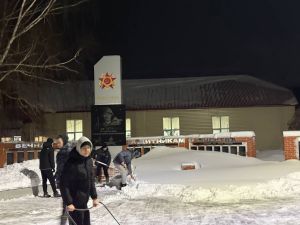 В селе Русское Макулово прошла патриотическая акция «Чистый обелиск». Местные подростки расчистили снег у памятника воинам.