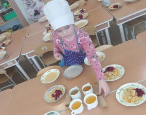 “Каенкай” балалар бакчасының урта төркеме балалары хезмәт процессларын мөстәкыйль башкарырга өйрәнүләрен дәвам итәләр, хезмәт формасына – дежур торуга күнегәләр.