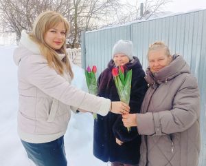 В канун Международного женского дня специалисты Молодежного клуба села Русское Макулово провели трогательную уличную акцию «Женщина. Весна. Цветы и комплименты». Они вышли на улицы, чтобы поздравить представительниц прекрасного пола с наступающим праздником, вручить им цветы и сказать самые теплые слова. Главными пожеланиями стали мир, чистое небо и искренние улыбки.
