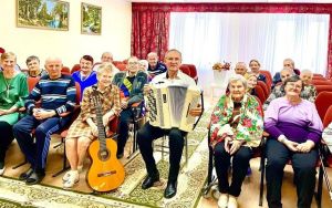 Преподаватель Верхнеуслонской детской школы искусств Лев Яковлев выступил с сольным концертом для проживающих дома-интерната для престарелых и инвалидов. Музыкант исполнил на баяне и гитаре классические произведения и популярные песни, вызвав живой отклик у зрителей.