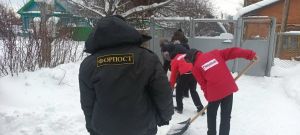 Волонтеры «Снежного десанта» в Верхнем Услоне расчистили двор ветерану-педагогу
