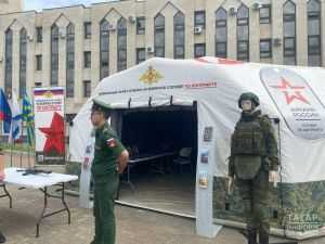 В Казани развернули мобильный пункт набора контрактников у агитпоезда
