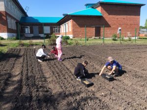 Октябрьский бистәсенең мәктәп яны участогында язгы эшләр гөрләп бара