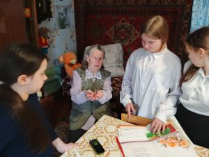 Ребята из Печищинской школы вместе с библиотекарями и работниками Дома культуры навестили старожила села Лию Львовну Соколову. Ей девяносто три года, и она поделилась с молодёжью воспоминаниями о своём нелёгком детстве и работе в тылу в годы войны.