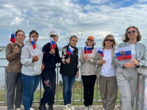 Воспитанники центра «Островок надежды» провели патриотический флешмоб с российскими флагами на горе Соколка в преддверии государственного праздника.