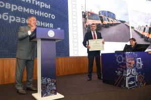 Глава Татарстана лично передал сертификат на новый школьный автобус Набережно-Морквашской школе во время пленарного заседания республиканского педагогического совещания в Иннополисе.