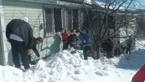 Школьники и волонтеры расчистили снег у дома матери Героя России