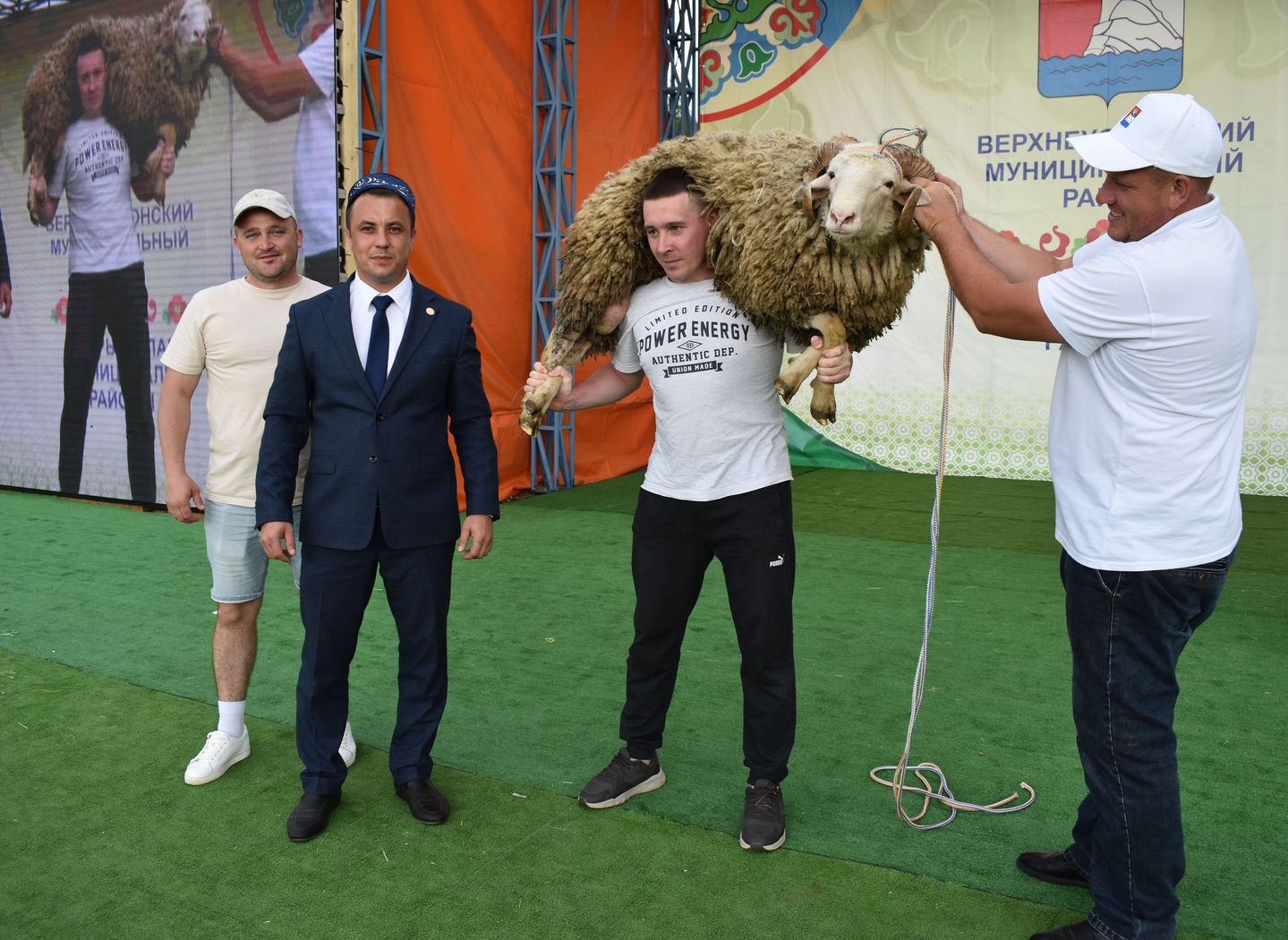 Победителем в молодежном этапе корэш стал Кирилл Никитушкин из Маматкозина. 17-летний парень сумел поднять на плечи немаленького барана и пронести его по кругу.